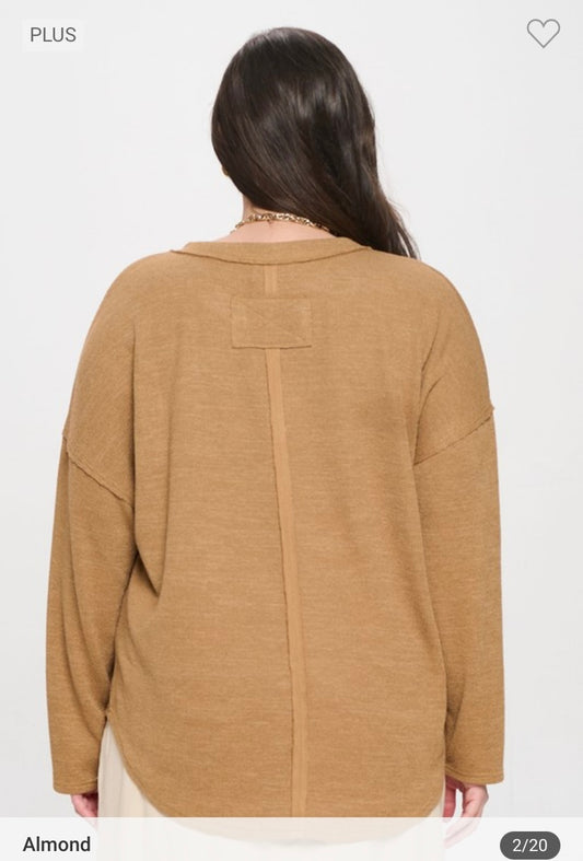 Ribbed Notch Neck Long Sleeve Top PLUS - CaramelRegular price $10.00 USDRegular priceUnit price / per$16.00 USDSale price $10.00 USDSale