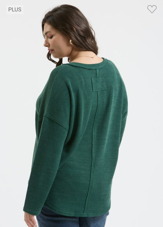 Ribbed Notch Neck Long Sleeve Top PLUS - GreenRegular price $10.00 USDRegular priceUnit price / per$16.00 USDSale price $10.00 USDSale